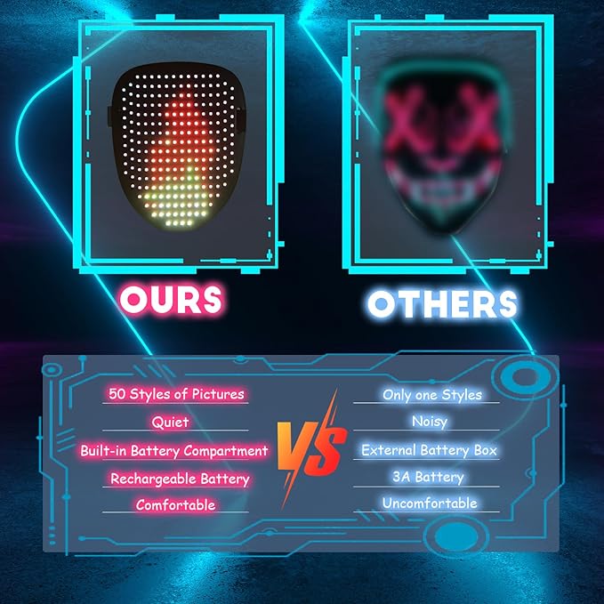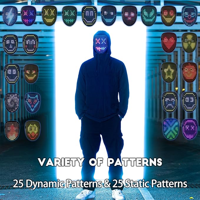 This smart LED mask features 50+ animated designs, gesture control, and a comfortable full-face fit. Switch patterns with a wave, customize your look in seconds, and glow all night at parties, trick-or-treating, or festivals.